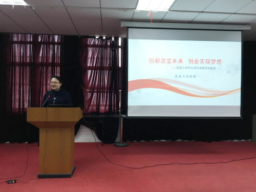 3月22日下午,校团委书记兰莉芸应邀做题为《创新改变未来 创业实现梦想》的创新创业教育指导讲座,为理学院教师解读我校学生学科竞赛政策。学院全体教师聆听了讲座。