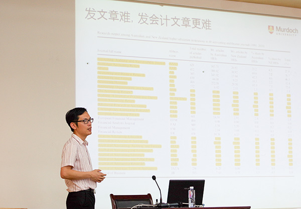 5月17日下午,财经学院举办主题为“金融与会计实证研究经验总结”的嘉庚财经讲坛之教授论坛第12期。澳大利亚莫道克大学会计系博导张飞达应邀主讲,学院相关师生参加了论坛。