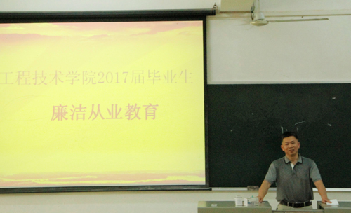 5月22日下午,工程技术学院开展毕业生廉洁入职教育,拉开了学院毕业生廉洁教育的序幕。学院党政领导、政工干部及全体毕业生出席了活动。