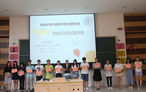 6月7日,外国语学院在建发211教室开展第六届五佳社团评比活动。学院共有12个社团参加此次评比活动。