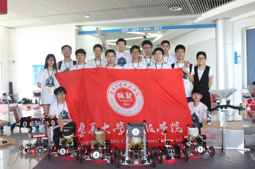 “出门右拐”战队由学院信息工程系教师郑新旺、李颖指导,成员来自信息工程系和机械工程系等不同专业的13名学生。“出门右拐”战队队员们通过研读规则、确定方案、拟画图纸、实际制作、理论提升、模拟训练等方式全方位提升参赛水平,经过7个月的准备与训练,克服各种困难,最终设计出5辆机器人代表学院参加在上海交通大学举行的RoboMasters2017全国大学生机器人大赛中国东部分区赛。这是学院首次参加此项赛事,也是福建省内独立学院首次独立组队参赛。在与众多985、211高校战队同场竞赛中,学院“出门右拐”战队凭借扎实的基础、熟练的实操能力,经过激烈的比拼,最终获得东部分区赛三等奖的佳绩。