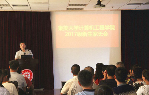 计算机工程学院新生家长见面会上,学院领导介绍了学院的专业设置、学科发展前景、课程学习特点等内容;就学籍相关问题做了说明;并针对新生的大学心理适应、计算机学科学生常见学习思想问题,给新生家长提出了建议。在与家长互动的环节中,学院领导还解答了家长们提出的问题,帮助家长更全面地了解学校及学院的教学及学生管理情况。家长们相信孩子在学校将度过充实的大学四年。