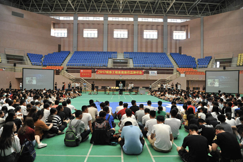 10月11日下午,诚毅学院在学院体育馆举办电子类竞赛作品展示会,该展示会由学院信息工程系承办。学院副院长黄义新,教务部、信息工程系相关负责人,信息工程系相关专业老师和辅导员以及信息工程系2017级新生共同观看了展示会。