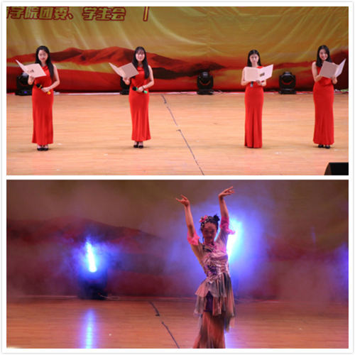 充满青春活力的开场舞《Good time+Worth it》拉开了晚会的序幕。《那些年,那些事》歌曲串烧、西方的小提琴与维吾尔族的古乐器碰撞的《维哈串烧》、将悠扬的葫芦丝与柔美的民族舞相结合的《落花情》、小品《你所忽视的若是一场梦》等精彩节目,给现场观众带来一场视听盛宴。此外,“坚定跟党走,喜迎十九大”写出了学院学生对中国迈入新时代美好未来的期待;《我的祖国》通过朗诵和舞蹈抒发了学院学生爱党、爱祖国的深情。