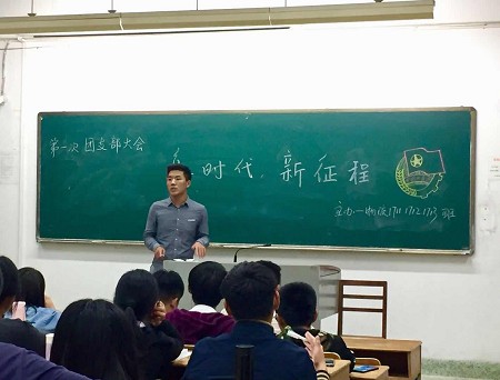 学院辅导员在团课中要求,全体团员要认真学习贯彻十九大精神,坚定理想信念,以习近平新时代中国特色社会主义思想武装头脑,志存高远,脚踏实地,做有理想、有本领、有担当的新时代青年。