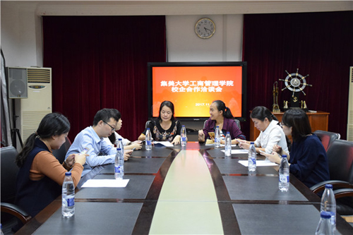 11月15日,工商管理学院举办校企合作洽谈会。学院党委副书记林芙蓉,厦门智顶互动传媒股份有限公司、厦门维韬管理咨询有限公司、环球资源广告(深圳)有限公司等企业有关人员参加了洽谈会。
