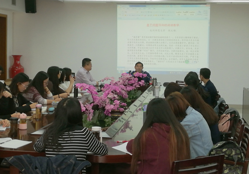 近日,华东师范大学教育科学院博士生导师、中国高等教育学会语文教育专业委员会学术委员会主任倪文锦教授应邀来文学院,为学院师生做了题为《基于问题导向的阅读教学》的学术讲座。学院教育硕士生导师及教育硕士研究生到场聆听讲座。
