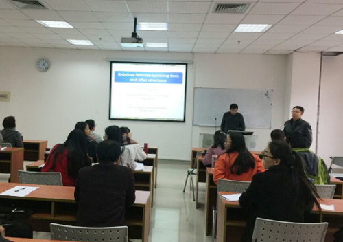 近日,新加坡南洋理工大学博士生导师、国际著名的色根研究专家董峰明教授应邀来我校理学院作了题为“Relations between spanning trees and otherstructures”的学术报告。报告会由校教务处处长晏卫根主持,理学院部分老师和研究生参加了报告会。
