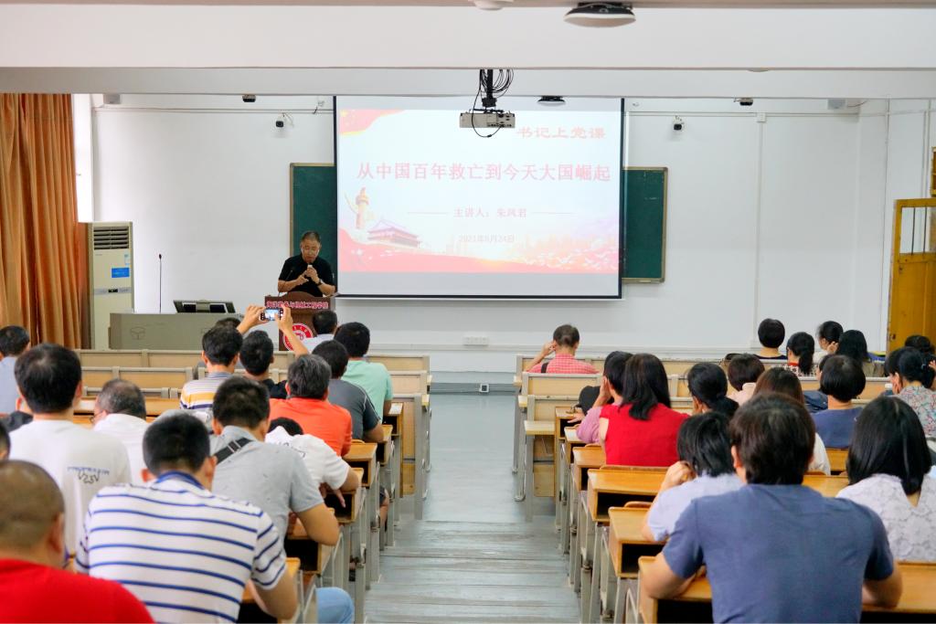 朱凤君以《从中国百年救亡到今天大国崛起》为题,结合自身的学习心得和工作经历,通过“山河破碎与百年逐梦”“党的成立与‘民族独立、人民解放’之梦”“党的新征程与‘中华民族伟大复兴’之梦”“百年逐梦与经验启示”等部分的讲授,带领全体党员从党走过的风云激荡的历史中、从党开创和不断推进的伟大事业中、从党全心全意为人民服务的根本宗旨和长期实践中,进一步深刻理解中国共产党为什么“能”、马克思主义为什么“行”、中国特色社会主义为什么“好”。