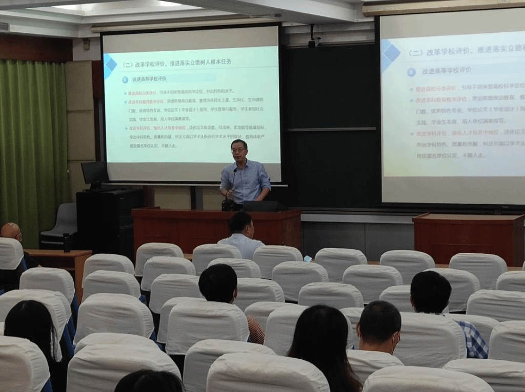 会上,院长邱吉福对《深化新时代教育评价改革总体方案》作了详细解读,并对学院2021年下半年的工作进行了部署。他强调了学院要严细实做好常态化疫情防控,并就学院的学科建设、专业建设、师资队伍、学院创收、校友工作、行政管理和学生工作等方面的工作在目标、思路和实现路径做了具体的分解,明确了本学期工作的重点和要求。