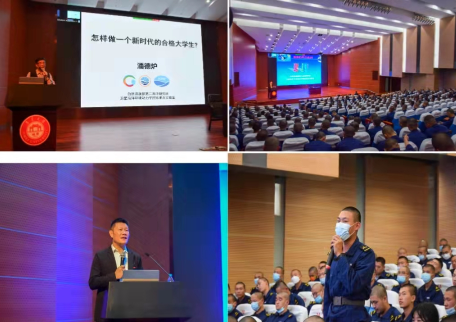 潘德炉院士首先对2021级新生经过疫情考验,顺利适应大学生活完成角色转变表示祝贺。讲座中,他主要围绕“怎样做一名新时代合格的大学生”为题展开讲授,从信息智能时代到来、海洋强国标准、我国科技的差距、人才现状等进行阐述,结合自己丰富的人生阅历和广博的专业知识,从“做人做事做学问”方面与同学们分享他的人生经验和体会。他指出,大学生生要进一步明确目标定位,要注重提升自身的思想道德、科学文化、身体与心理三种素质,努力掌握“提出问题”“分析问题”“解决问题”三种能力。他强调,高校思政工作者应在政治上多引导大学生、学习上多帮助大学生、生活上多关心大学生。讲座期间,潘德炉院士还与同学们进行了互动交流,讲座现场气氛热烈。
