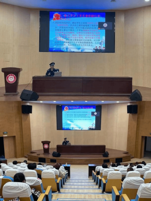 李清德结合高校常见的电信网络诈骗类型、近年来集美学村高校学生受骗案例以及防骗策略等内容为师生们生动阐述了电信网络诈骗防范教育工作的重要意义,他告诫所有师生要提高防范意识,不能轻易掉入网络“陷阱”,不要贪小利而丢大钱,警示同学遇到可疑的情况下,不听、不信、不急、不惧,及时拨打集美学村派出所电话:7797110。