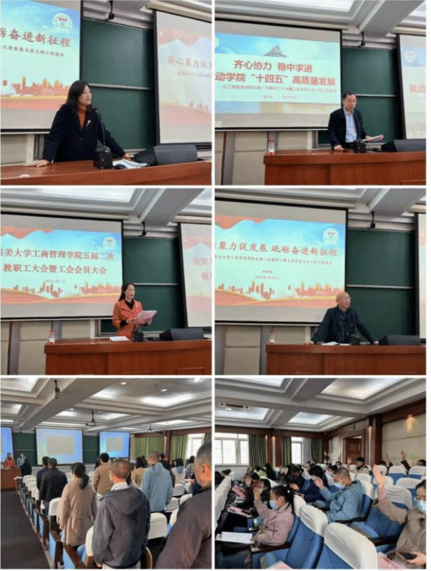 1月12日下午,工商管理学院召开五届二次教职工大会暨工会会员大会。全体教职工参会,大会由院党委副书记林芙蓉主持。
