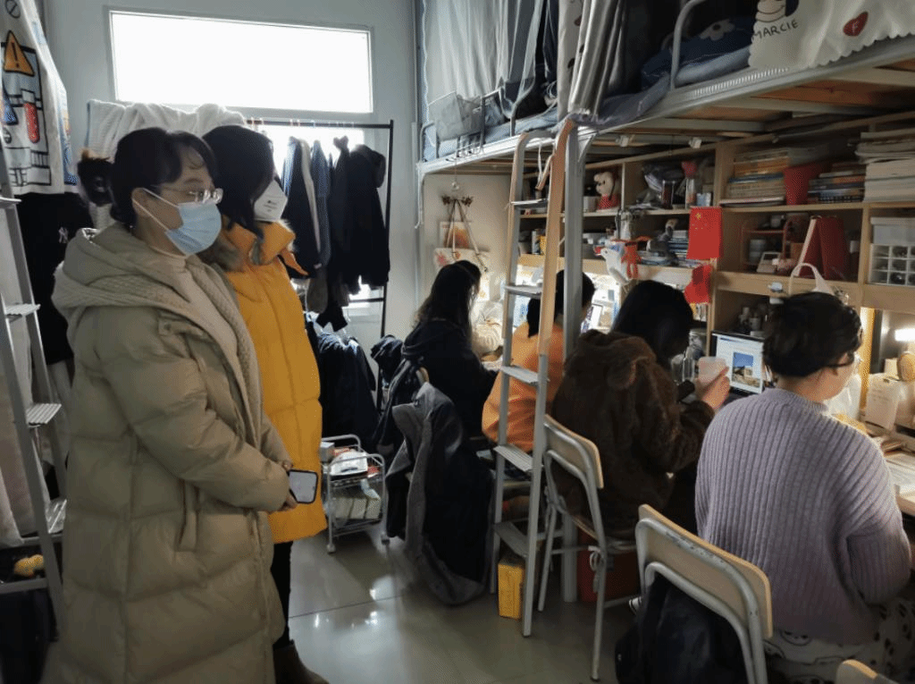 2月21日,音乐学院院长杨丽霞、党委副书记洪妍妮带领辅导员深入学生宿舍,了解线下课堂教学情况及学生返校状况,确保开学各项工作平稳、有序。