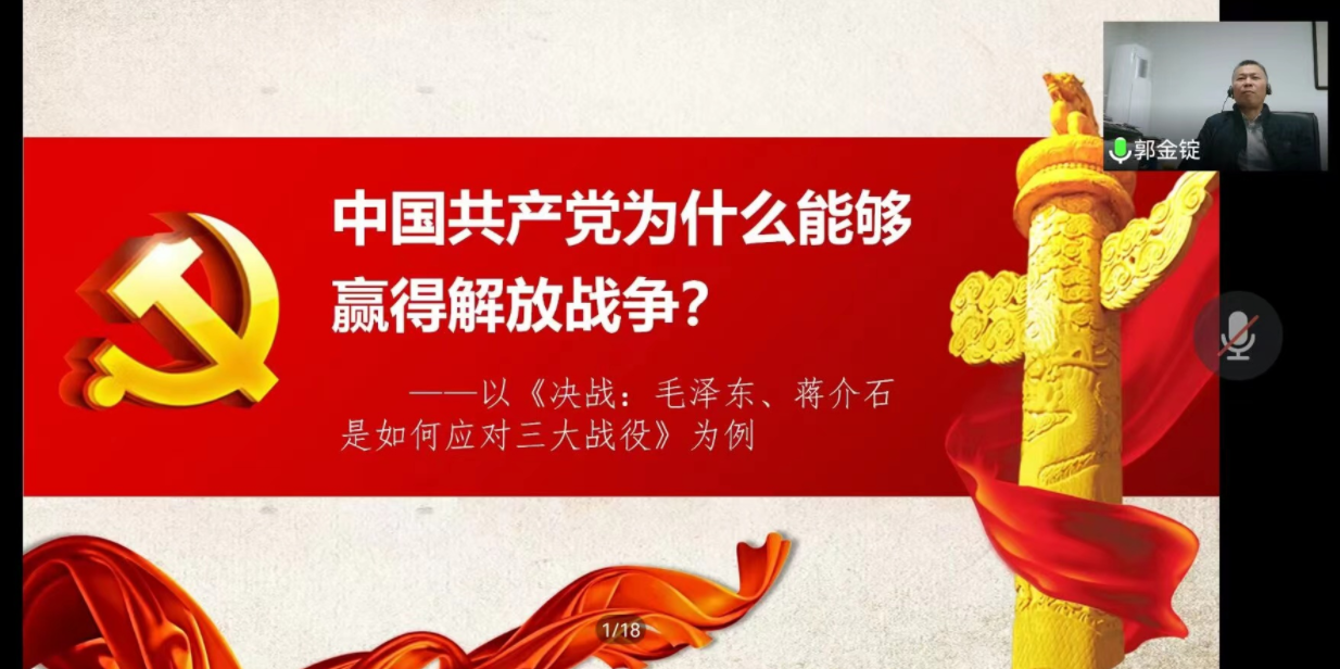 3月24日晚,学院党委书记郭金锭给学院学生党员上了一节主题为“以史明理、以史增信、学史崇德、学史力行”的党课。