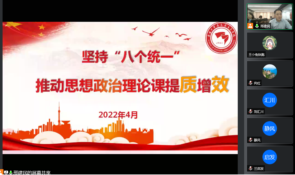 4月6日下午,马克思主义主义学院通过线上会议举行纪念“习近平总书记召开学校思想政治理论课教师座谈会并发表重要讲话 ”三周年座谈会。座谈会由学院党委书记王娟主持,肖仕平教授和朱婷婷、王东两位青年教师分别做交流发言,常务副院长张劲松进行总结发言。
