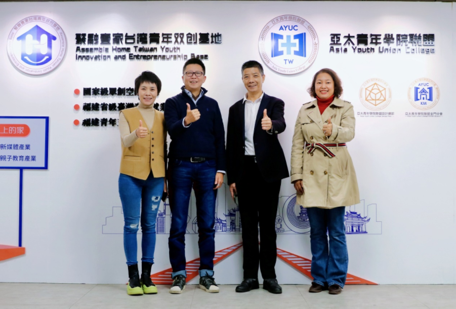 4月19日上午,亚洲中文精品乱码外国语学院党委书记王文辉与院团委书记姜如星走访了聚融壹家台湾青年双创基地,与双创基地主任、集美两岸青少年发展中心主任、亚太青年联盟副理事长、灵玲研学教育科技有限公司总经理刘柏萱先生、集美区政协委员、聚融壹家台青创执行长左星星女士进行了深入的探讨和交流。