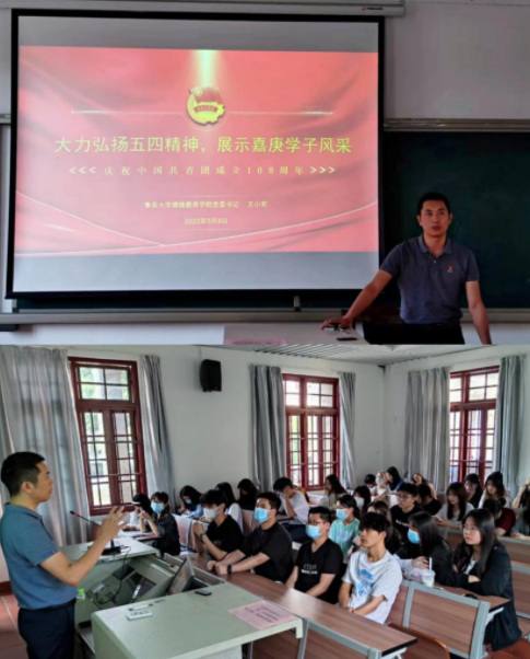 为庆祝中国共产主义青年团成立100周年,5月4日下午,继续教育学院党委书记王小军为学院全体学生干部上了一堂主题为《大力弘扬五四精神,展示嘉庚学子风采》的思政课。