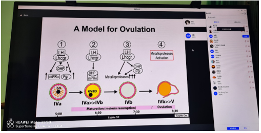 朱勇长年从事鱼类性腺发育的研究工作,是国际知名的鱼类生理内分泌研究专家,也是许多国内外知名内分泌期刊的编委。朱教授团队首先发现了新型的孕酮膜受体并阐述其功能。此次,他带来了题为“鱼类性腺发育的调控”的学术报告,深入浅出的讲解了鱼类卵巢的发育过程,卵泡的成熟与排卵的分子机理。这些研究对鱼类性成熟和繁育具有重要的指导意义。