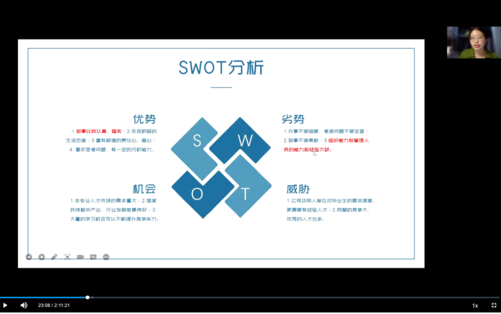 选手们理性分析了自身的职业性格、兴趣、价值观、能力等特质,利用相关专业知识对职业生涯认真探索,将自我认知与职业认知相结合,对未来的职业生涯进行了详细合理的规划。答辩环节,选手们对个人职业规划思路进行了汇报。评委老师们根据选手提交的材料及展示的内容进行提问,并对选手存在的问题和困惑给予专业建议。