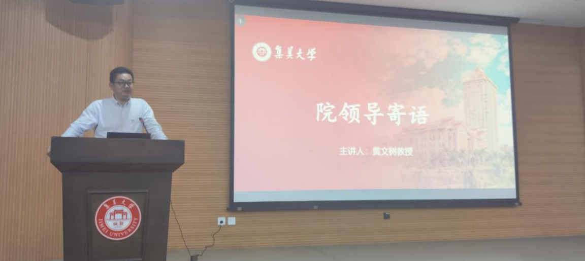 黄文树要求同学们要均衡发展、刻苦钻研、严格要求自己、不怕孤独;要学会通读文献,掌握专业知识,注重体育锻炼,保持良好的体魄,积极参与学科竞赛、社会实践和对外交流等活动,不断充实和锻炼自己,让自己的研究生生涯更加丰富、充实。
