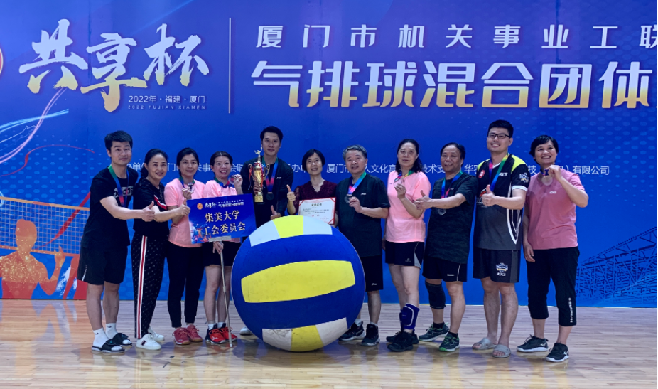 本次比赛是厦门市机关事业工会联合会主办的首届排球混合团体赛,来自市直机关28支队伍约300人参加了本届赛事。我校代表队克服组队时间短、队员磨合不足、伤病较多等困难,在赛场上团结合作,互相鼓励,不断加强球队内部的磨合,不断增进队员之间的互信和感情,全力以赴打好每一个球。经过奋力拼搏,我校代表队过关斩将,喜获第三名的好成绩。