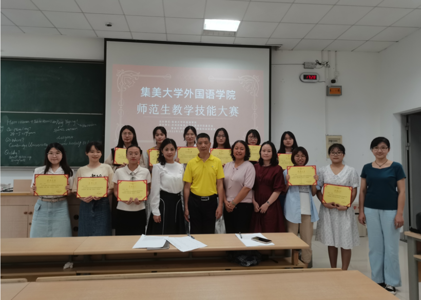 大赛分为教学设计、模拟课堂教学和专家提问三个环节。选手们精心准备,既展示了教学技能,也为师范生搭建了自我展示锻炼的平台。经过激烈的角逐,师范英语2012蔡彦颖获得一等奖;师范英语1911谢雨欣、师范英语1911丁钰婷两位同学获得二等奖;师范英语2012林婧儿、师范英语1912黄奕奇和师范英语1911钟思思三位同学获得三等奖;师范英语1911陈奕巧、师范英语2011苏晓丹、师范英语2011许铃华、师范英语2011张小倩、师范英语2011白婉茹等六位同学获得优秀奖。