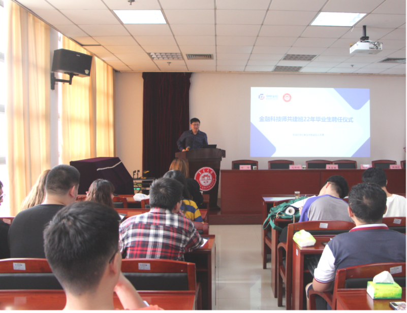 沈彬彬结合自身经历、计算机行业的发展前景和公司现状及发展、就业岗位和福利待遇等,为现场19级同学开展了主题为“现代金融科技促进数字经济发展”的2022年共建班实习宣讲。