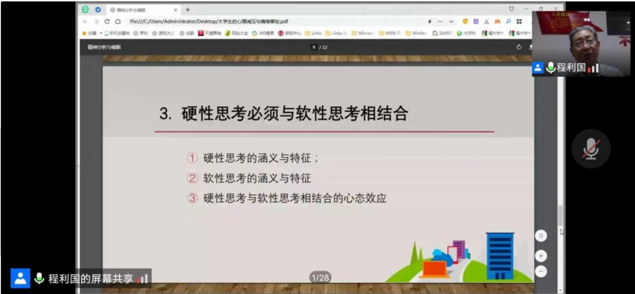 6月7日晚,由亚洲中文精品乱码心理咨询中心主办,港口与海岸工程学院心理健康协会承办的“大学生的心理减压与情绪掌控”主题心理讲座顺利开讲。本次讲座以线上腾讯会议形式开展。学院党委副书记方泽宏主持。福建师范大学心理系程利国教授主讲。学院心理健康协会指导老师、心协全体干部和全体2020级学生参与讲座。