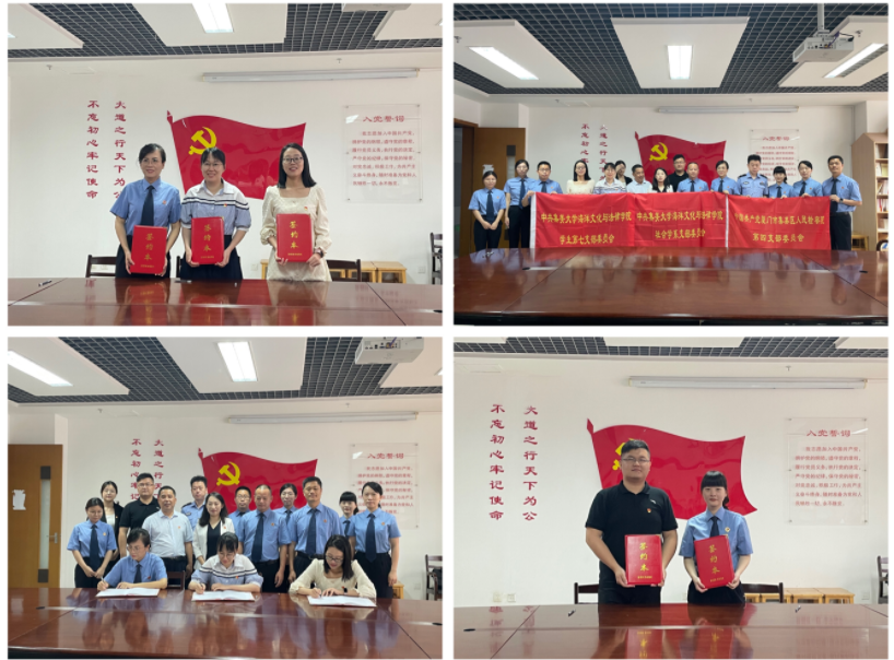 6月8日,海洋文化与法律学院社会学系党支部、学生第七党支部与集美区人民检察院机关第四党支部,学院团委与集美区人民检察院团支部共建协议签约仪式在尚大楼516会议室举行。检察院副检察长岳金富、检察官李翼,学院党委书记黄煜等人出席了共建签约仪式,三方党支部书记、双方团组织负责人分别代表支部签署了共建协议书。