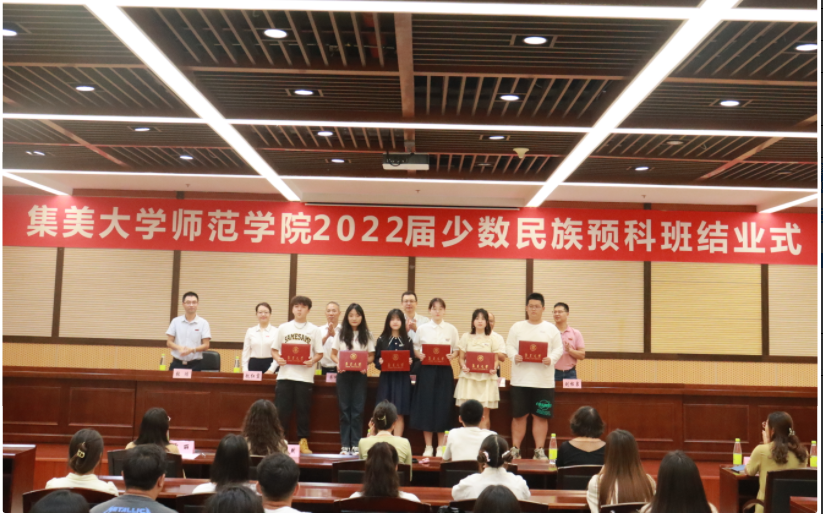 最后,与会领导老师为少数民族预科班学生颁发结业证书并合影留念。