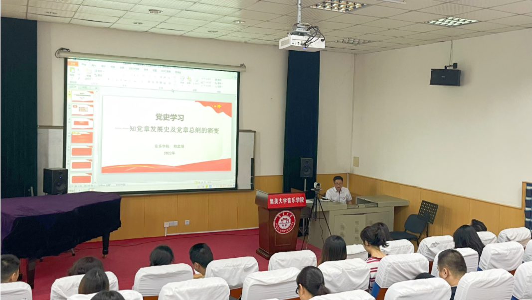 6月20日,音乐学院党委书记赖孟情在08C0206教室讲授题为《知党章发展史及党章总纲的演变》的专题党课。学院教工第一、第二党支部,学生第二党支部全体党员参加了学习。党课由学院党委副书记洪妍妮主持。