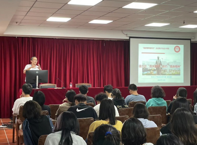 10月12日,美术与设计学院于美术馆二楼报告厅举办“蕴含在嘉庚建筑里的嘉庚精神”为主题的嘉庚精神讲座。校陈嘉庚研究院廖永健老师主讲, 2022级全体同学聆听了讲座。