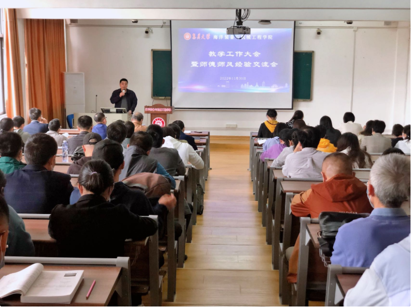 为进一步加强学院师德师风建设,提高教育教学质量,提升教师队伍的整体素质,11月30日下午,海洋装备与机械工程学院召开师德师风经验交流会。本次会议以“学习贯彻党的二十大精神 全面推进师德师风建设”为主题,由学院党委书记陆宝忠主持,学院全体教职工参加了会议。