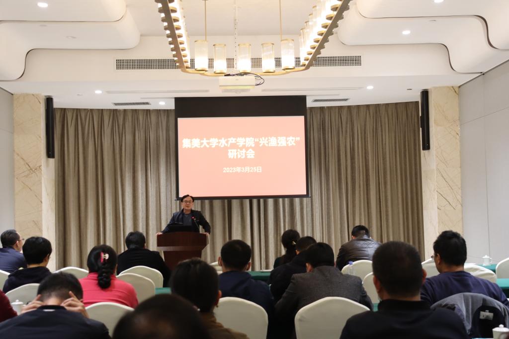 参观完,学院党委书记黄海宏主持召开“兴渔强农”研讨会。学院党委副书记、院长张春晓作了工作报告,他围绕加快推进一流大学建设目标,对比同类高校现状,剖析学院高层次人才引育、科研团队管理、教学工作等方面存在的问题,指出学院加快改革,主动创新的紧迫性和必要性。与会党员针对学院发展存在的问题,展开讨论,积极建言献策。黄海宏总结强调,要深入理解“强国必先强农 农强方能国强”的重大意义,要认识到渔业发展是强农的关键一环。他要求党员要学习谷文昌同志敢于担当、艰苦创业的精神,主动服务农业强国建设,同心协力、奋力拼搏,为学院进步、学校发展和国家强盛作出应有的贡献。