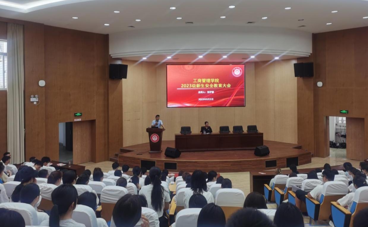 为提升新生安全防范意识,守住安全底线,9月5日,工商管理学院在学术报告厅召开2023级新生安全教育大会,邀请校保卫处处长刘子奋为新生作专题报告。院党委副书记董欣胜主持会议,新生辅导员、2023级全体新生参会。
